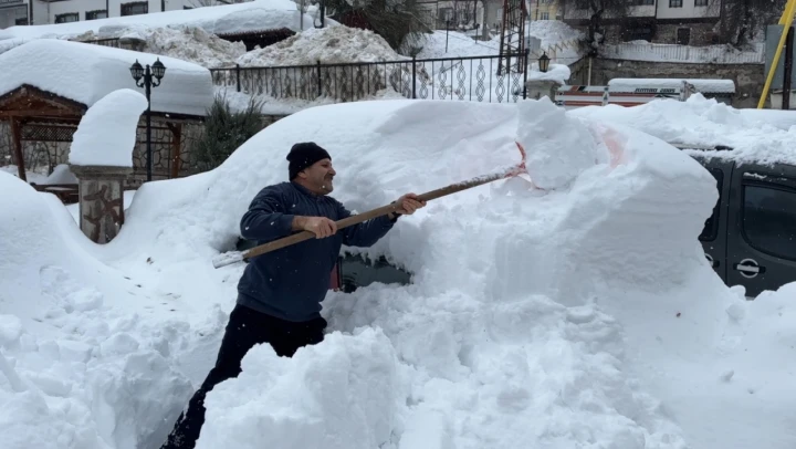 Kastamonu'nun 1150 rakımlı ilçesi Küre'de kar kalınlığı 1,5 metreyi aştı. Vatandaşlar kar altında kalan araçlarını çıkarmak için yoğun çaba harcadı.