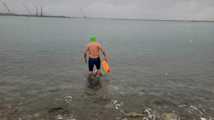 İnebolu'da soğuk ve karlı havaya aldırış etmeyen vatandaş denize girerek yüzdü.