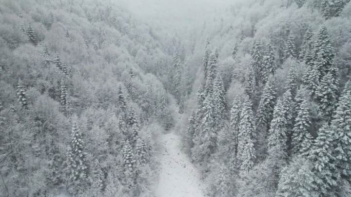 Kar ve Sisle Buluşan Ormanlar Görüntülendi