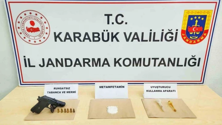 Safranbolu Cumhuriyet Başsavcılığı koordinesinde, İl Jandarma Komutanlığı ekiplerince yürütülen operasyonda, bir şüphelinin aracında, üzerinde ve iş yerinde arama yapıldı. Aramalarda 18,62 gram metamfetamin, 2 uyuşturucu kullanma aparatı, 1 tabanca, 9 el yapımı patlayıcı madde ve 6 fişek ele geçirildi.