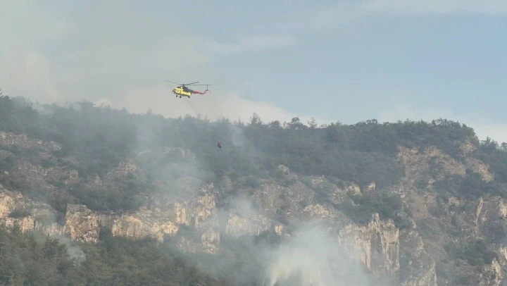 Orman Genel Müdürlüğü koordinesindeki ekipler, helikopterler, arazözler ve iş makineleriyle yangının enerjisini düşürdü.