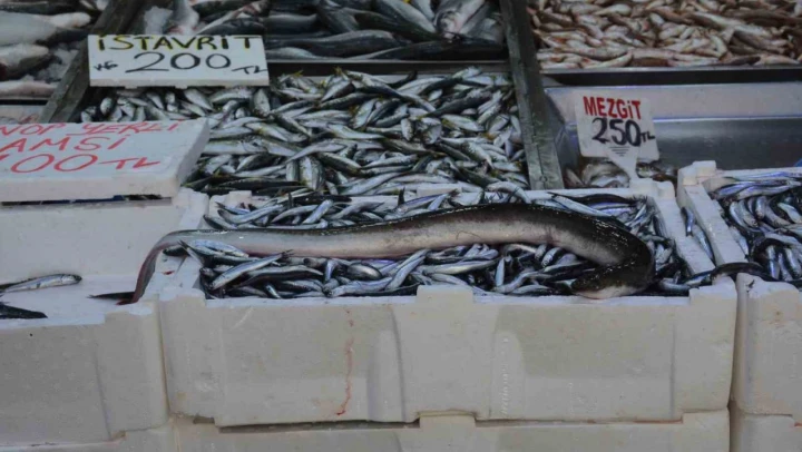 Karadeniz'de nadir görülen yılan balığı, Sinop'taki balıkçılar tarafından yakalandı. Sinop'ta balıkçı tezgahında sergilenen yılan balığını gören vatandaşlar şaşkınlığını gizleyemedi. Balıkçı Çetin Kurt yılan balığına nadir olarak rastladıklarını belirterek, 'Bu balık nadir görülen bir balık. Yaklaşık 3 veya 5 senede bir gözükür. Fiyatı 500 lira. 960 gram, yani 1 kilogram diyebiliriz. Vatandaşlar ilk defa gördükleri için ilgisi var. Aker balığı diyorlar buna. Bunun buğlaması olur. Izgarasını da çok meth ediyorlar. Yağlı olduğu için ağır geliyor' dedi.