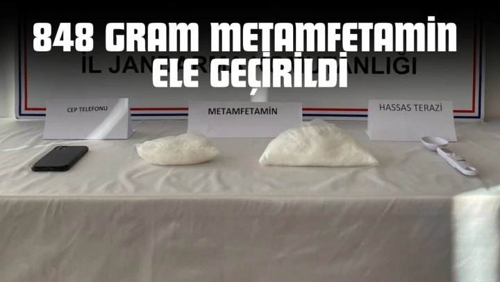 Jandarma ekiplerince gerçekleştirilen operasyonda 848 gram metamfetamin maddesi, 1 adet hassas terazi, 1 cep telefonu ve 1 sim kart ele geçirildi. Olayla ilgili 2 şüpheli gözaltına alındı.