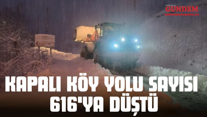 Kastamonu'da kar yağışı sebebiyle yolu kapanan köy sayısı İl Özel İdaresi ekiplerinin çalışmasıyla 616'ya düştü.