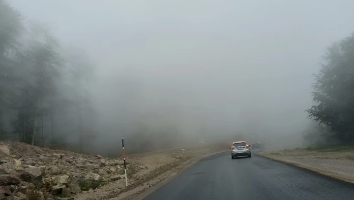 Sürücülerin takip mesafesini koruyarak seyrettiği Kastamonu-Çatalzeytin kara yolunda bir süre sonra sis etkisini kaybetti.