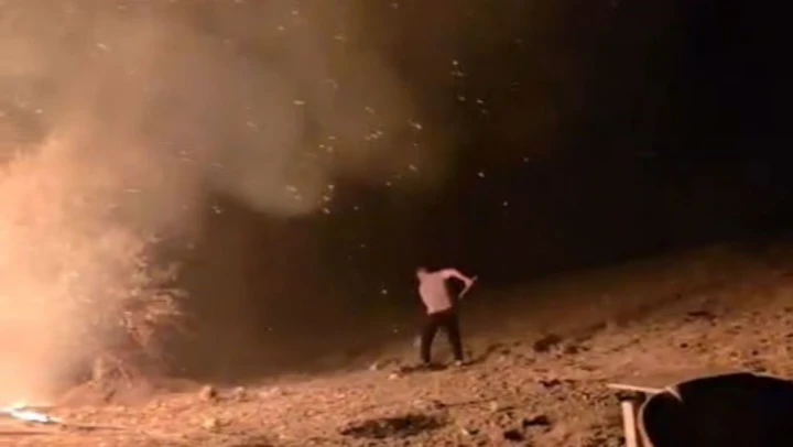 Yangını görüntülemek için olay yerinde bulunan Gazeteci Bayram Polat, 'Çankırı-Ankara karayolu, Germece köyü mevkiinde bulunan bir kavun tezgahında yangın çıkmış. Çevresindeki ağaçlarda yangın vesilesiyle maalesef tutuşmuş. Ekipler olay yerine intikal ederken vatandaşlar da yangına toprak atarak büyümesini engellemeye çalışıyor. İçerisinde piknik tüpü de olduğu söyleniyor. O yüzden bizlerde uzak durmaya çalışıyoruz. Çevrede ormanlık bir alan yok, yangın büyümeye müsait değil' diye konuştu.