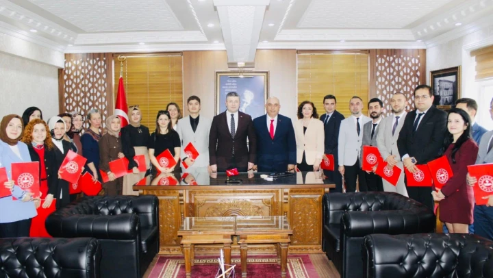 Kaymakam Necdet Uçar, 24 Kasım Öğretmenler Günü münasebetiyle İlçe Milli Eğitim Müdürü Mehmet Azak, Şube Müdürü Sema Ulugün ve öğretmenleri makamında kabul etti.