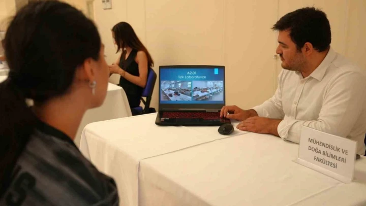 Üniversitenin Merkez Kütüphanesi'nde kurulan tercih alanlarında görev yapan akademik danışmanlar, adaylar ve velilerle yüz yüze görüşerek kapsamlı rehberlik sağlıyor.
