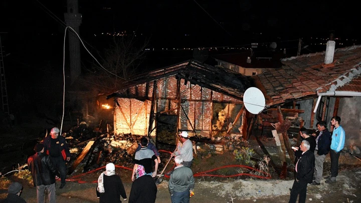 Tosya'nın Sofular köyünde çıkan yangında 1 ahır ve samanlı tamamen yandı.