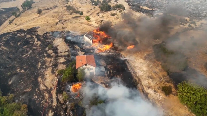 Köye Sıçrayan Orman Yangını Havadan Görüntülendi