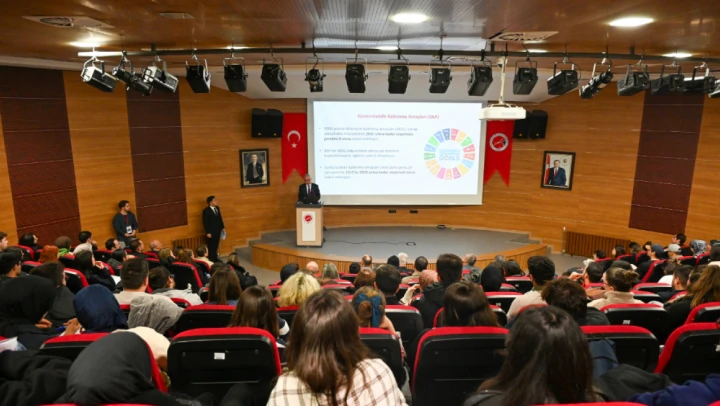 Daha sonra kürsüye gelen Prof. Dr. Aydın, 'Su Kaynaklarının Sürdürülebilir Yönetimi' başlıklı sunumunda suyun yaşam için temel bir unsur olduğunu vurgulayarak, sürdürülebilir su kullanımının 1980'li yıllarda uluslararası gündeme taşındığını ifade etti.