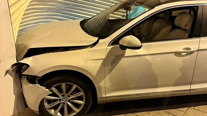 Mardin'in Nusaybin ilçesinde sürücüsünün direksiyon hakimiyetini kaybettiği otomobil bir dükkana daldı.