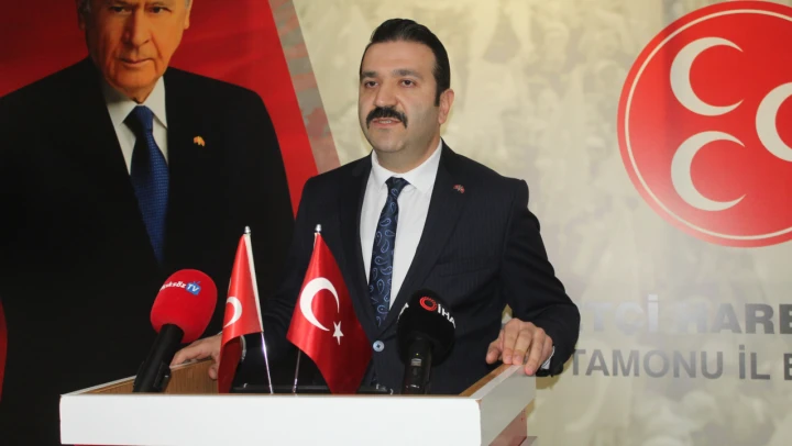 Milliyetçi Hareket Partisi (MHP) Kastamonu İl Başkanlığı binasında MHP İl Başkanı Emre Şahin gündemdeki konularla ilgili basın açıklamasında bulundu.