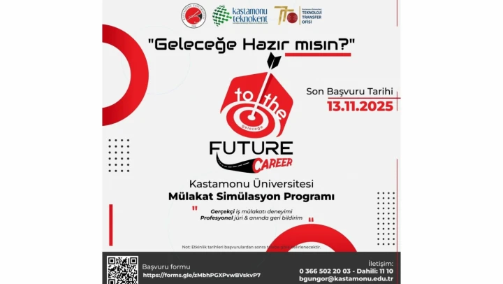 Kastamonu Teknokent'ten yapılan bilgilendirmede; 'Gerçek bir mülakat deneyimi yaşayacak, jüri karşısında performansını gösterecek ve profesyonel geri bildirim alacaksın. Yani mezun olmadan önce iş görüşmesinin provasını yapma fırsatın var! Etkinlik tarihleri başvurulardan sonra talebe göre belirlenecek. Başvuru formu; https://forms.gle/x7byUy8nbznW29qh7 adresinde, kontenjan sınırlı' denildi.