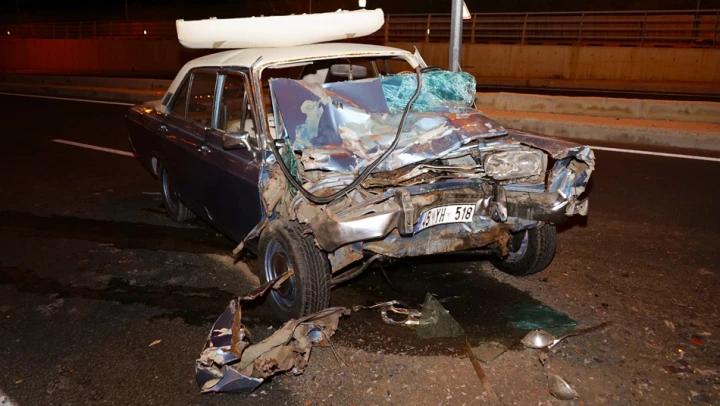 Odun yüklü kamyona çarpan otomobil hurdaya döndü