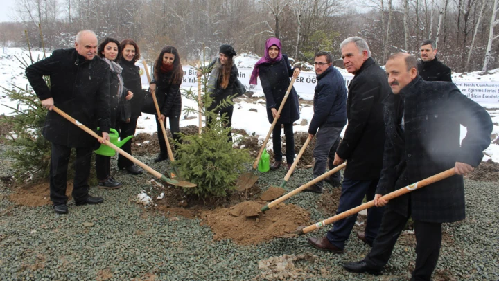 Konuşmaların ardından öğretmenlerinde katılımıyla fidanlar toprakla buluşturuldu. Ardından '24 Kasım Öğretmenler Günü Hatıra Ormanı' yazısı altında hatıra fotoğrafı çektirildi.