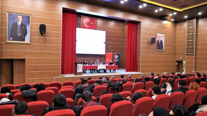 Gençlik Merkezi'nde düzenlenen panele İl Milli Eğitim Müdürü Hasan Gümüş, Şube Müdürleri Mücahit Kılınç ve Halil İbrahim Kara, okul yöneticileri, öğretmen ve öğrenciler katıldı.