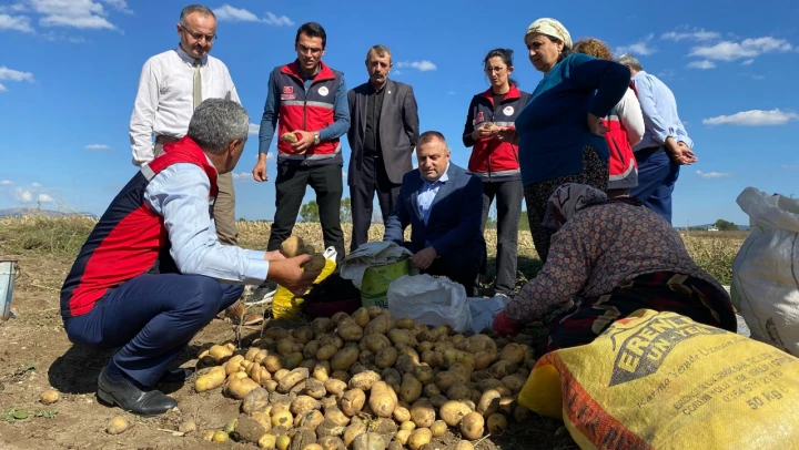 Üreticilerle bir araya gelen İl Müdürü Kılıç, bereketli bir üretim sezonu geçirilmesi temennisinde bulunarak patates üretiminin il ekonomisine katkısına dikkat çekti.