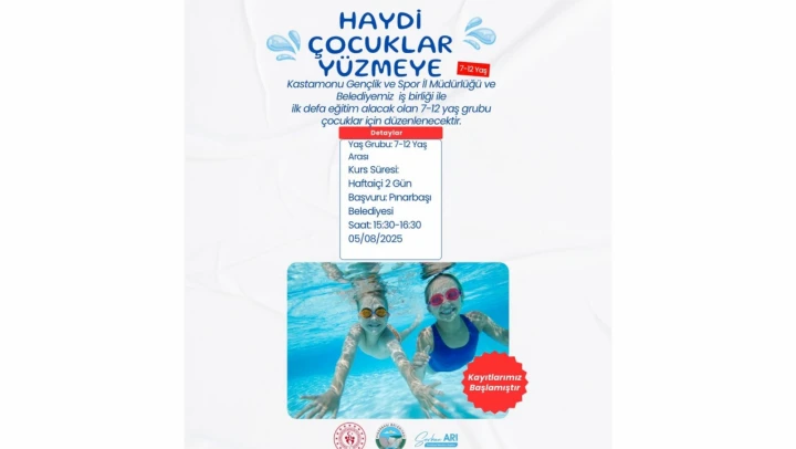 Kastamonu'nun Pınarbaşı ilçesinde çocuklara yönelik yüzme kursu başlıyor. Pınarbaşı Belediyesi ile Kastamonu Gençlik ve Spor İl Müdürlüğü tarafından hayata geçirilen 'Yüzme Bilmeyen Kalmasın' projesi kapsamında, ilk defa yüzme eğitimi alacak olan 7-12 yaş arası çocuklara yönelik kurs için kayıtlar başladı.