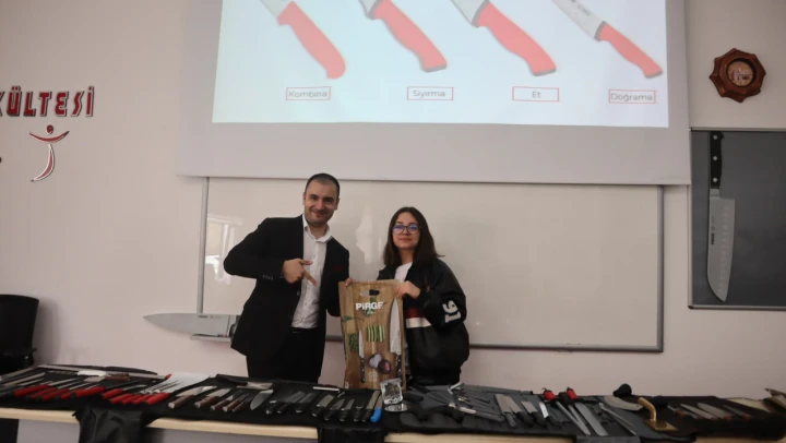 Eğitmen Fırat Erbil'in sunumuyla gerçekleşen bu özel etkinlikte; bıçak türleri, doğru tutuş teknikleri, güvenli kullanım ve bakım, masatlama ve kesim becerileri gibi pek çok konu hem teorik hem uygulamalı olarak ele alındı. Etkinlik sonunda ise üç şanslı öğrenciye Pirge tarafından şef bıçağı hediye edildi.
