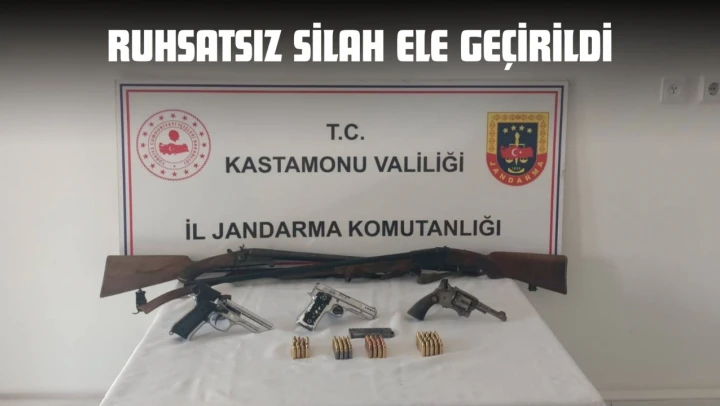 Devrekani Cumhuriyet Başsavcılığı koordinesinde, İl Jandarma Komutanlığı ekipleri tarafından yapılan çalışmalarda 3 ruhsatsız tabanca ve 2 adet ruhsatsız av tüfeği ele geçirildi.