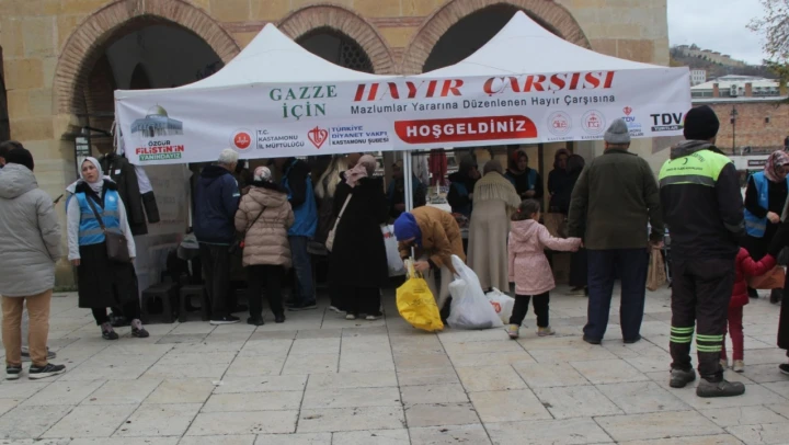 Türkiye Diyanet Vakfı (TDV) Kastamonu Şubesi ile İl Müftülüğü tarafından Nasrullah Meydanı'nda Gazze yararına 'Hayır Çarşısı' açıldı.