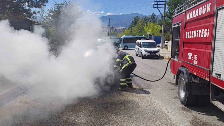 Karabük'te seyir halindeki otomobil alevlere teslim oldu. Yangında otomobilde maddi hasar meydana geldi.