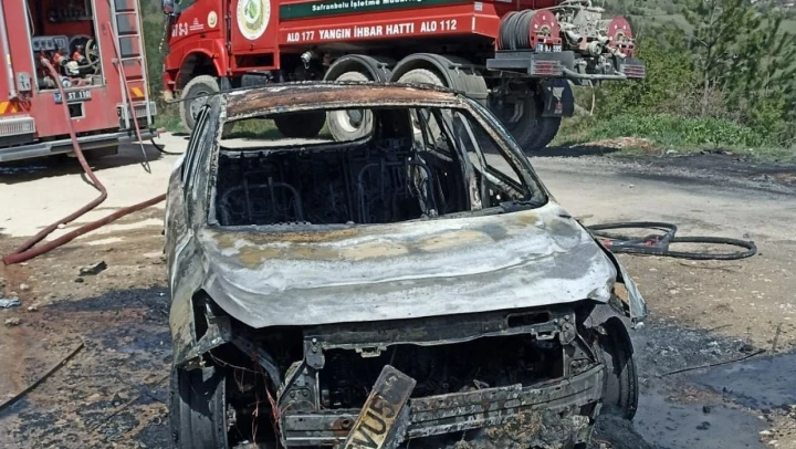 Karabük'ün Safranbolu ilçesinde seyir halindeki otomobil yanarak kullanılmaz hale geldi.
