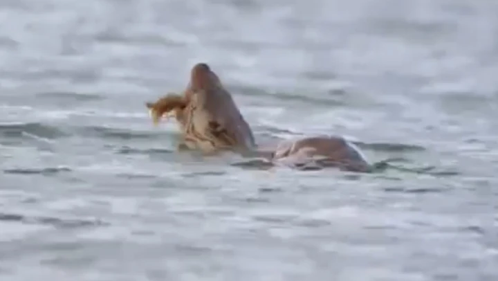 Su Samuru Avını Yerken Görüntülendi