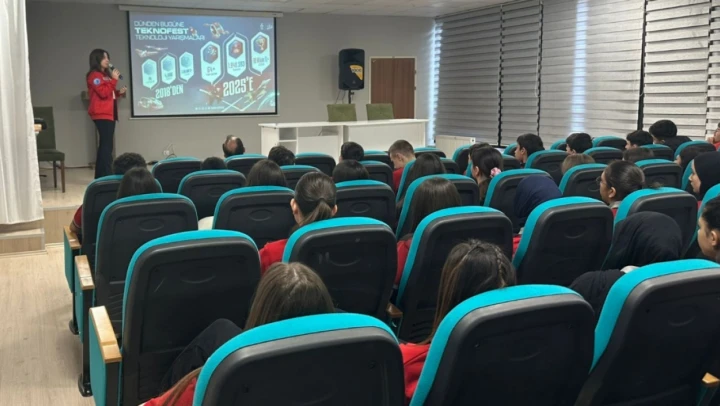 İl Milli Eğitim Müdürlüğü'nden yapılan bilgilendirmede; 'Öğrencilerimiz ve öğretmenlerimizle birlikte; bilim, teknoloji, havacılık ve uzay alanlarında büyük hayallere bir adım daha attık. Gelecek burada, gelecek sizsiniz' denildi.