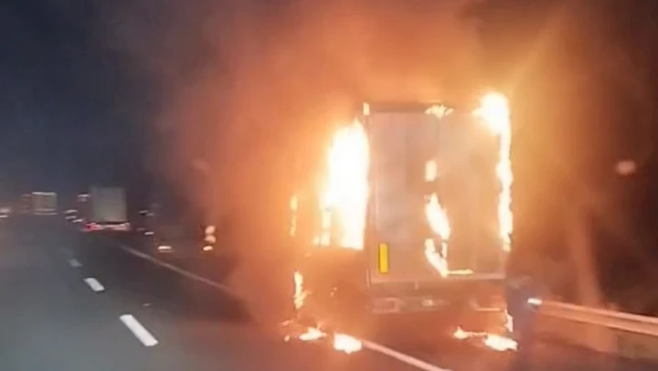TEM Otoyolu'nda Tırın Dorsesi Yandı