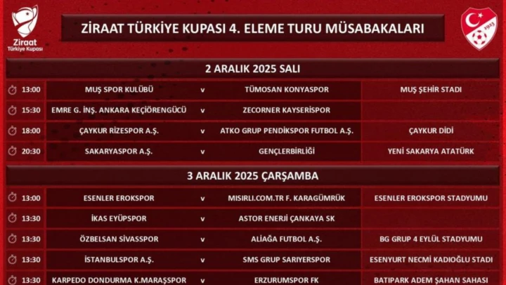 Ziraat Türkiye Kupası 4. eleme turunda oynanacak müsabakaların tarihleri belli oldu.