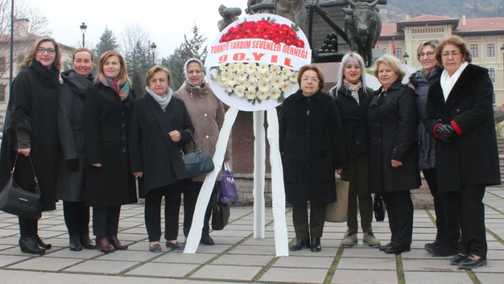 Türkiye Yardım Sevenler Derneği Şubesi Başkanı Ferhan Çelen ve üyeleri dün kuruluşlarının 90'ıncı yıldönümü münasebetiyle Atatürk ve Şehit Şerife Bacı Anıtı'na çelenk sundular.