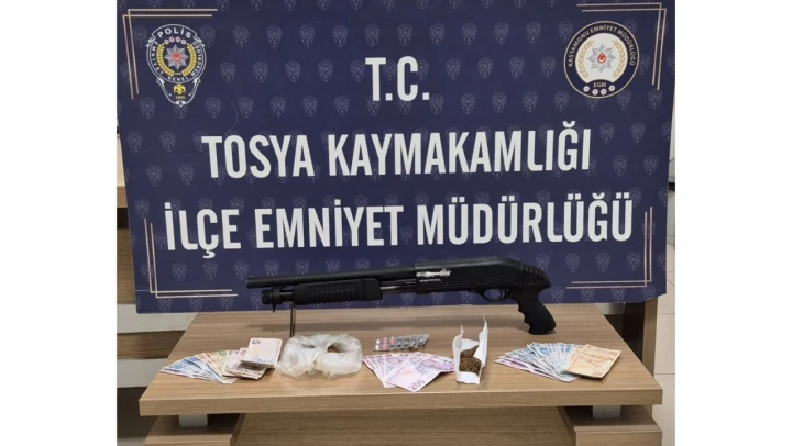Tosya İlçe Emniyet Müdürlüğü ekiplerince bir ikamette yapılan aramada uyuşturucu maddeler ve ruhsatsız tüfek ele geçirildi.