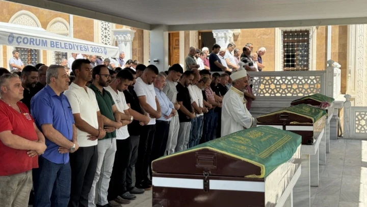 Çorum'da yağ tankına düşerek hayatını kaybeden anne ve oğlu son yolculuğuna uğurlandı.