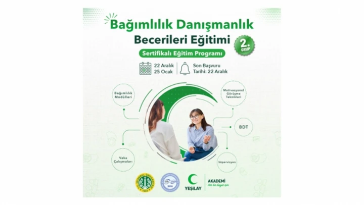 Yeşilay'dan yapılan açıklamaya göre, bağımlılıklarla mücadelede farkındalık oluşturmak ve nitelikli insan kaynağını güçlendirmek amacıyla eğitim faaliyetleri sürdürülüyor. Bu kapsamda, Yeşilay Akademi ile İstanbul-SEM işbirliğinde düzenlenen Bağımlılık Danışmanlık Becerileri Eğitimi Sertifika Programı'nın 2. grubu, 22 Aralık ila 25 Ocak 2026 arasında gerçekleştirilecek.