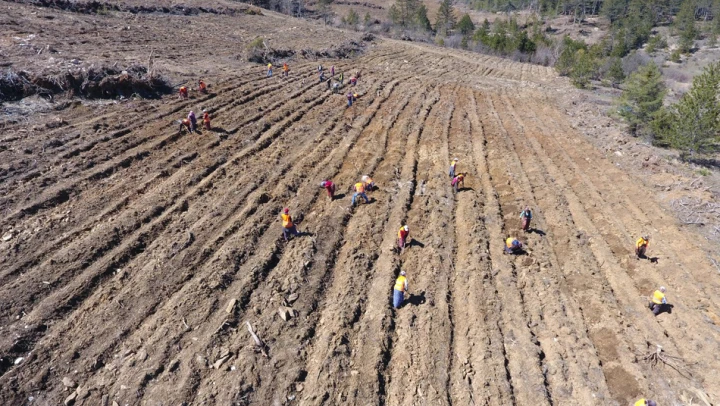 Devrilen bu ağaçların Ekim ayı itibarıyla üretim işlemlerini tamamlayan OGM, bu işlemleri yaparken arazinin ağaçlandırma için hazırlıklarını da eş zamanlı olarak yürüttü. Hazırlıkları tamamlanan ve fidan dikimi için uygun hale getirilen sahada 184 bin fidan toprakla buluşturuldu.