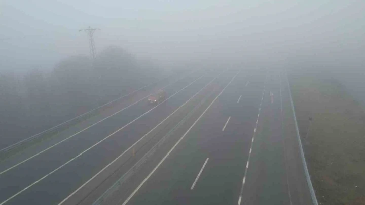 Öte yandan karayolundaki sis dron ile havadan görüntülendi.