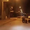 Görüntülerde alt caddeye doğru kaçan ayılar bir süre sonra gözden kayboldu.