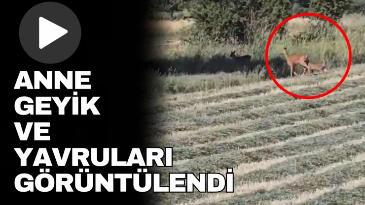 Anne ve yavru geyiklerin tarlada koşuştuğu görüntüler izleyenleri gülümsetti.