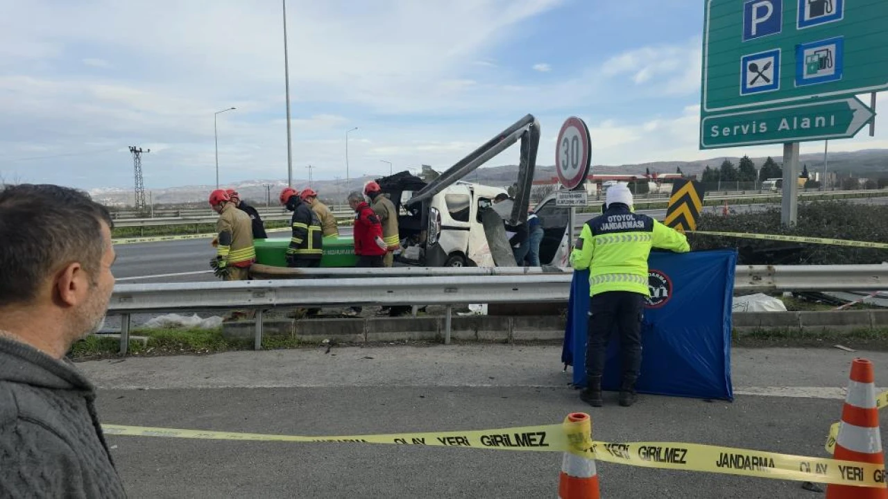 TEM Otoyolu'nun Düzce geçişinde bariyerlere ok gibi saplanan hafif ticari araçtaki biri Kastamonulu 2 kişi olay yerinde hayatını kaybetti.