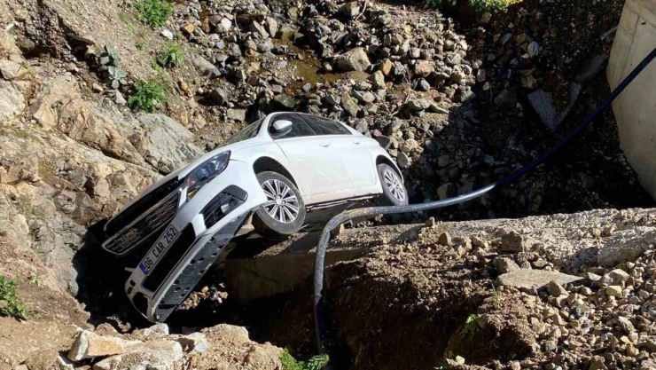 Bolu'da Yedigöller Milli Parkı yolunda kontrolden çıkan bir otomobil menfeze yuvarlandı.