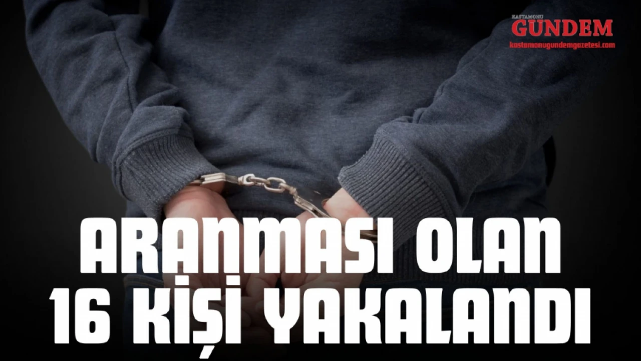 İl Jandarma Komutanlığı tarafından aranması olan 16 kişi yakalandı.