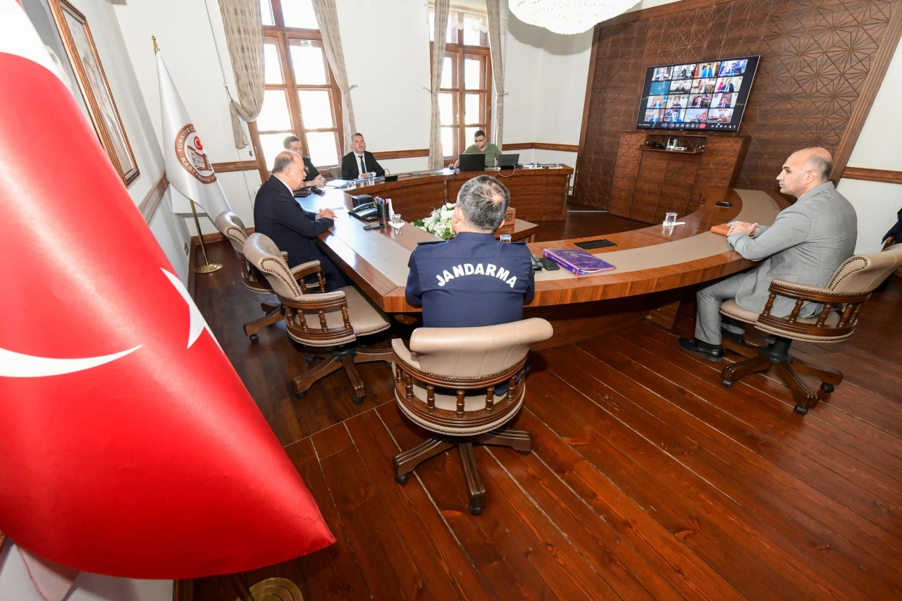 İl Güvenlik ve Asayiş Koordinasyon Merkezi Toplantısı, Vali Meftun Dallı başkanlığında video konferans sistemi üzerinden yapıldı.