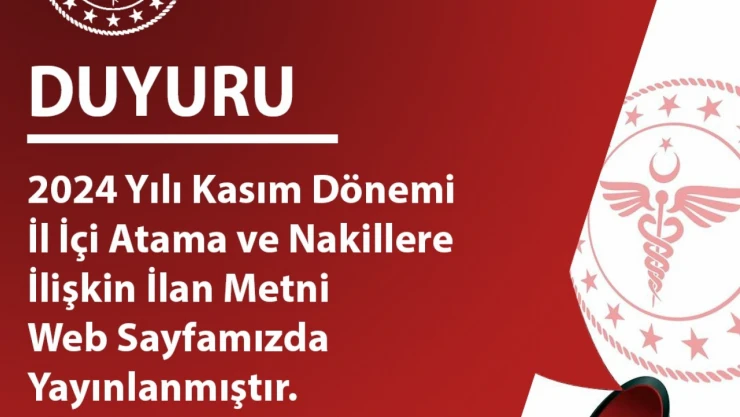 İl Sağlık Müdürlüğüne ve bağlı sağlık tesislerinde görev yapan sağlık ve yardımcı sağlık personeli için, kasım dönemi il içi atama ve nakil işlemleri başvuruları başladı.