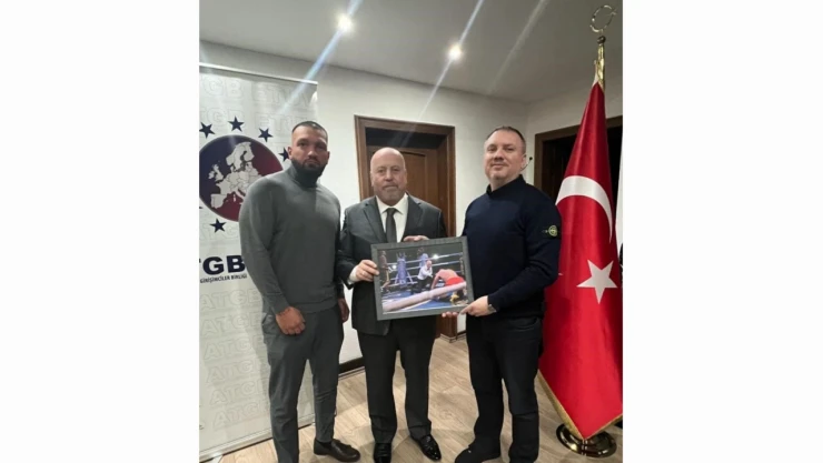 Boksör Çağlar Genç, ATGB Genel Merkezini ziyaret ederek Genel Başkan Orhan Buyurman ile görüştü. Avrupa’daki Türk sporcuların desteklenmesi noktasında ellerinden gelen gayreti göstermeye çalıştıklarını belirten Orhan Buyurman, “Boksör kardeşimiz lk profesyonluk maçında Macaristanlı rakibini nakavt ederek Avrupa’da kendinden bahsettirmeye başladı. Kardeşimize çıkmış olduğu bu yolda destek olmak için ana sponsorluğunu üstlendiğimizi kendisine bildirmek istiyorum. Avrupa’daki Türkleri böyle yeteneklere sahip çıkmaya davet ediyorum dedi.