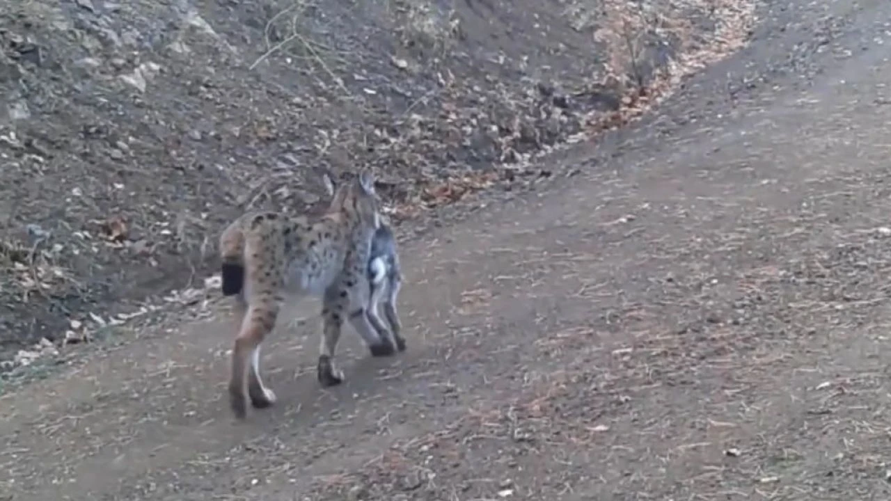 Çankırı'da avladığı hayvanı ağzında taşıyan vaşak ile karacalar ve kurt sürüsü fotokapan kameralarına yansıdı.