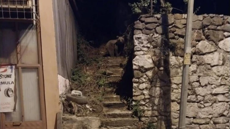 Gece saatlerinde ilçe merkezindeki sokaklarda dolaşan ayı, bir iş yerinin önünde bulunan araç lastiklerini parçaladı. Bir süre ilçe merkezinde gezen ayı, daha sonra ormanlık alana girerek uzaklaştı. İlçe merkezinde gezen ayı vatandaşlar ve iş yerlerinin güvenlik kamerası ile görüntülendi.