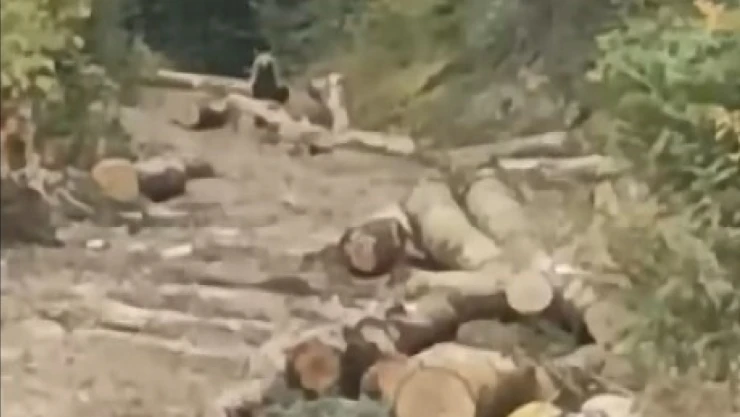 Orman işçileri, ayıyı kesim alanından uzaklaştırmak için çeşitli sesler çıkarsa da ayı, oturur vasiyette işçileri izlemeye devam etti. Bir süre işçileri izleyen ayı, ormanlık alanda gözden kayboldu.