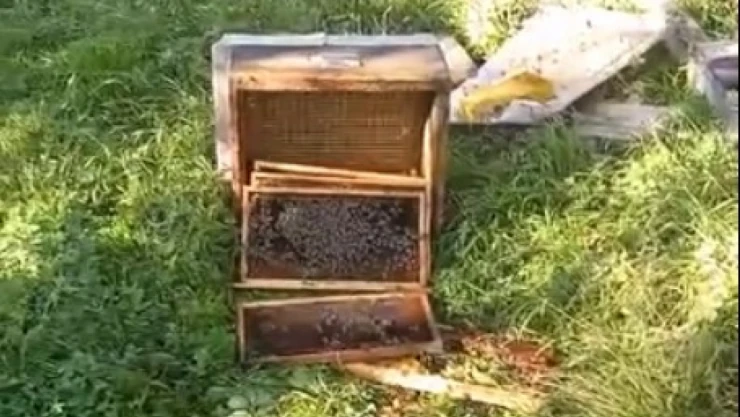 Kastamonu Bozkurt'ta tel çekili duvarı toprağa eşerek aşan ayı, üç arı kovanını parçalayarak peteklerdeki balı yedi.